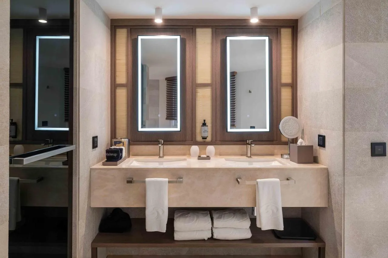 Bucătărie: Mașină de cafea Frigider General : Seif Fier de călcat Ventilator Facilităţi de călcat Pardoseală de gresie/marmură Presă pentru călcat pantaloni Izolare fonică Aer condiţionat Vedere: Vedere la mare Vedere la punct de atracţie Media/Tehnologie: TV cu ecran plat Canale cu plată TV Telefon Canale prin satelit Dormitor: Paturi extra lungi (> 2 metri) Lenjerie de pat Garderobă sau dulap Servicii: Serviciu de trezire Exterior: Mobilier de grădină Terasă Balcon Facilităţile camerei: uscător de rufe Priză lângă pat Canapea extensibilă Baie: Prosoape Articole de toaletă gratuite Uscător de păr Toaletă Duş Hârtie igienică Cadă Baie privată Zonă de living: Zonă de relaxare Mâncăruri și băuturi: Aparat pentru prepararea de ceai/cafea Minibar