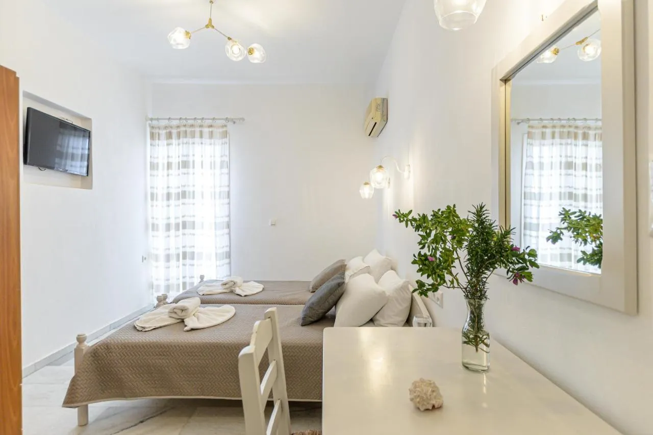 Studiourile Katerina Babis sunt situate la doar câțiva pași de plaja cu nisip din Agios Prokopios. Acestea dispun de o piscină în aer liber înconjurată de șezlonguri. Cazarea cu aer condiționat are o terasă sau un balcon.