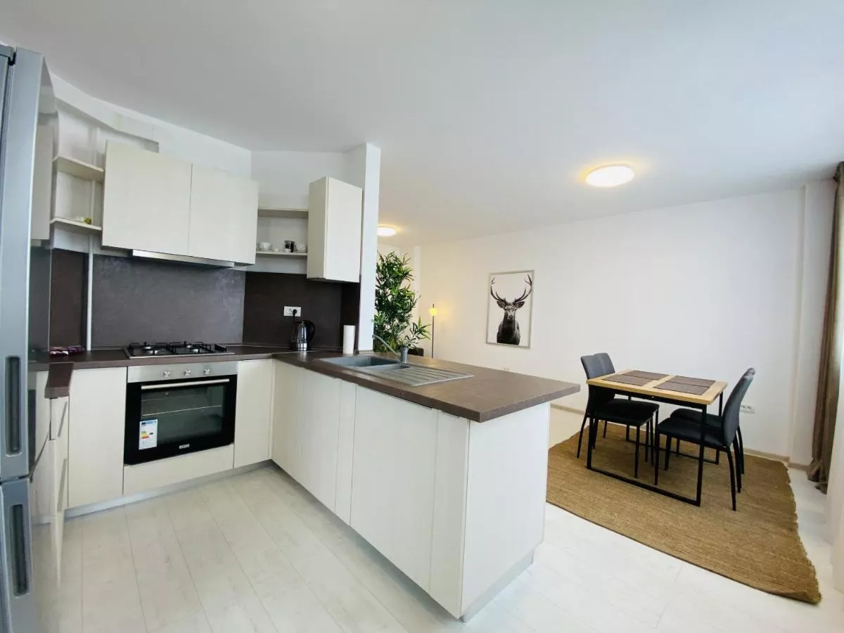 Dimensiuni: 57 mp Numar de camere: 2 camere This apartment comes with 1 living room, 1 separate bedroom and 2 bathrooms with a bath and a hairdryer. In the well-fitted kitchen, guests will find a stovetop, a refrigerator, a dishwasher and kitchenware. Boasting a balcony with mountain views, this apartment also features a washing machine and a TV with satellite channels. The unit has 2 beds. Baie privată cu cadă