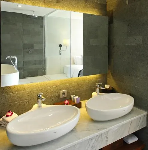 Cu o piscină pe acoperiș în aer liber, Hotelul și Spa Watermark Bali se află la o distanță de mers pe jos de liniile nisipoase ale plajei Kedonganan. Oferă cazare modernă cu acces gratuit la WiFi.