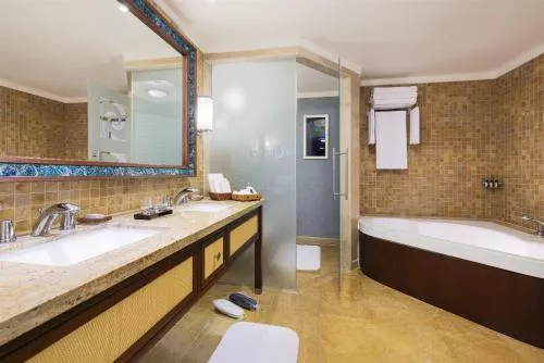 Dimensiuni: 45 mp Numar de camere: 3 camere This room features a private balcony with sea view, air conditioning, ceiling fan, sofa, flat-screen TV and telephone. A minibar, espresso machine and safety deposit box are available for guests use. Private bathroom comes with shower, toilet, hairdryer, free toiletries and slippers. Linen and towels are included.