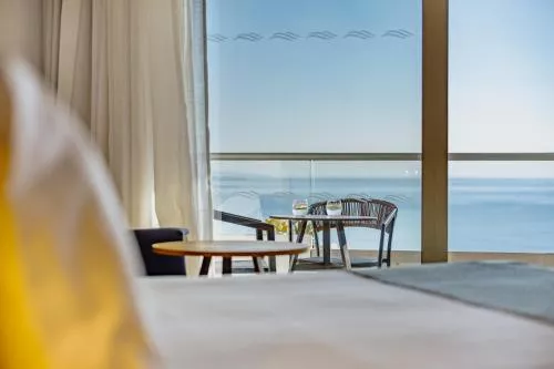 Suitele Junior au o terasă privată cu cadă cu hidromasaj; de asemenea, au decor și mobilier moderne pentru a vă bucura de un sejur de neuitat și oferă vedere laterală la Marea Mediterană. Camerele de acest tip pot găzdui cel mult 2 adulți și 2 copii (cu vârsta mai mică de 12 ani).