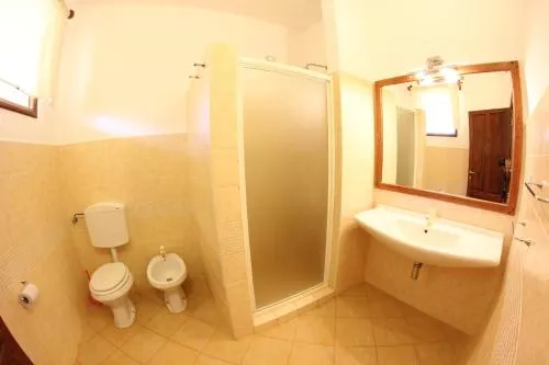 It is composed of 2 interconnecting double rooms and includes air conditioning, a small fridge, and TV. Its private bathroom comes with shower and bidet. Baie privată cu duș