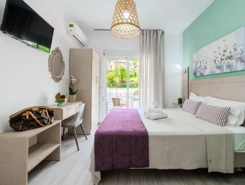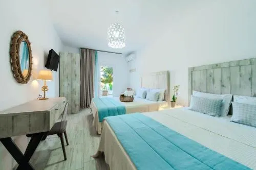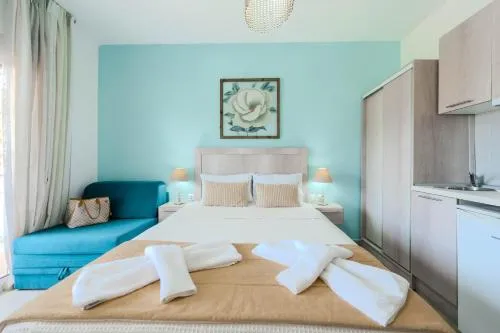Într-o grădină înflorită, la 250 de metri de plaja Skala Potamia, Hotelul Blue Bay oferă studiouri cu aer condiționat și WiFi gratuit, precum și un balcon mobilat cu vedere la Marea Traciană sau la munții din Thassos.