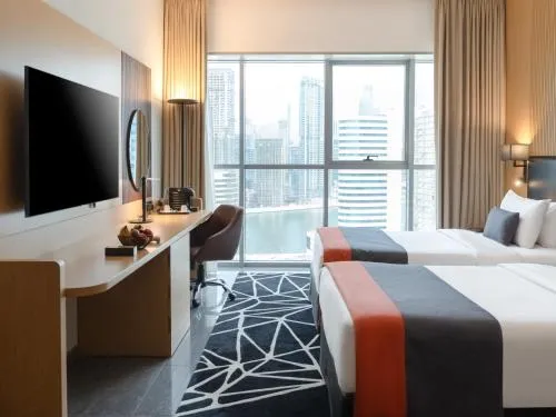 Acest hotel de 4 stele dispune de 437 de camere care oferă vederi spre Canalul Dubai, grajduri sau iconicul Burj Khalifa. Toate camerele oferă un birou spațios pentru lucru cu internet prin cablu sau WiFi, precum și servicii de recepție și room service non-stop.