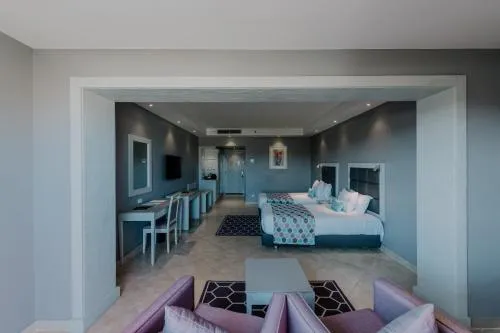 Dimensiuni: 44 mp Numar de camere: 2 camere Cameră cu pat king-size, living cu canapea extensibilă, dulap/dressing, baie cu cadă/duș și terasă sau balcon. Această cameră are articole de toaletă gratuite, WiFi, TV LED cu canale prin satelit, seif, facilități pentru cafea și ceai și minibar (aprovizionat zilnic cu apă, băuturi răcoritoare la sosire și completat la fiecare 4 zile).