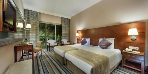 Complexul de 5 stele Pine Bay Holiday Resort oferă camere și bungalouri cu aer condiționat, decorate în culori calde. Acestea sunt echipate cu un balcon privat și un televizor.