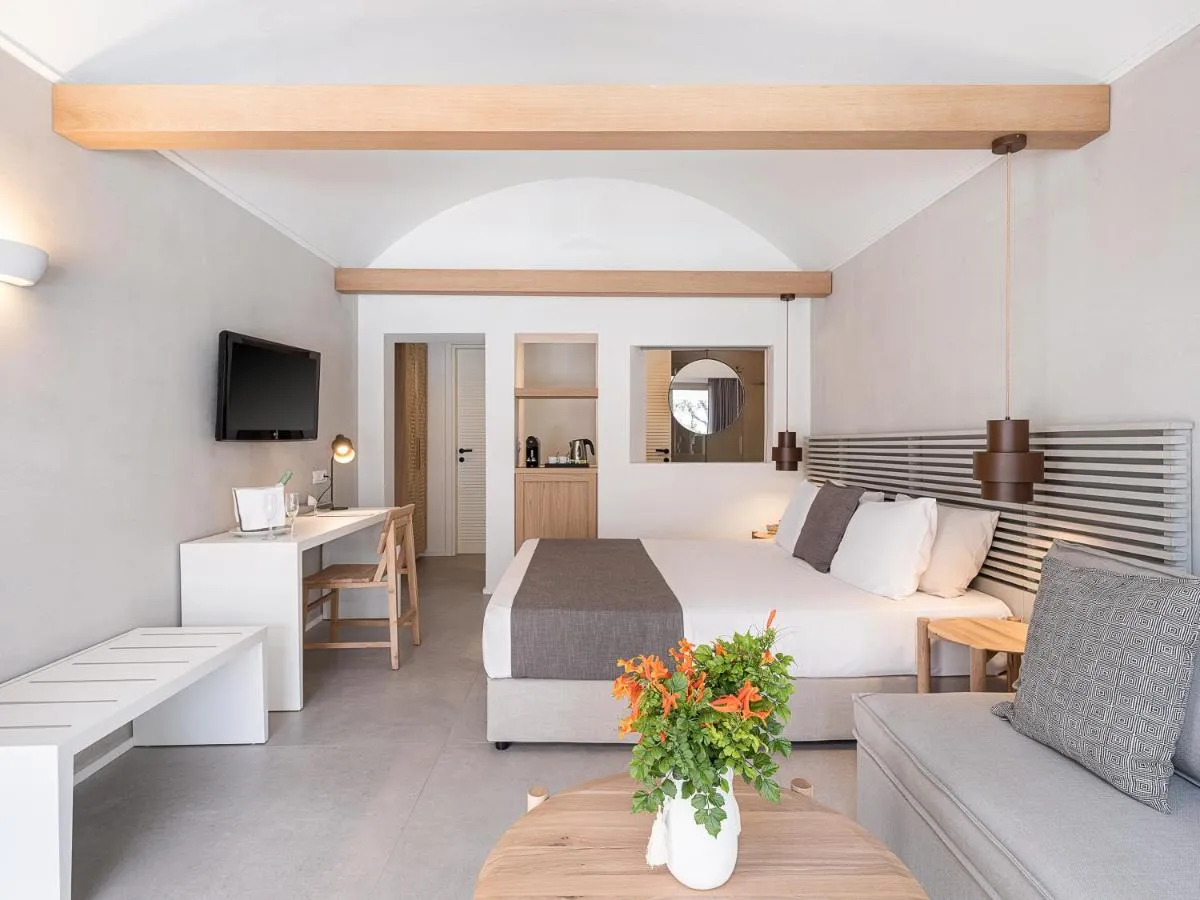 Baie: Halat de baie Prosoape Articole de toaletă gratuite Papuci de casă Uscător de păr Toaletă Duş Hârtie igienică Baie privată General : Seif Încălzire Aer condiţionat Vedere: Vedere la mare Media/Tehnologie: TV cu ecran plat TV Telefon Canale prin satelit Servicii: Serviciu de trezire Zonă de living: Canapea Exterior: Mobilier de grădină Terasă Balcon Facilităţile camerei: Priză lângă pat Mâncăruri și băuturi: Aparat pentru prepararea de ceai/cafea Bucătărie: Frigider Cană fierbător