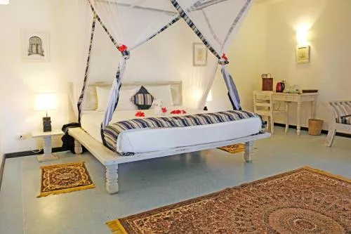 Dimensiuni: 65 mp Numar de camere: 2 camere Offering a private veranda, this spacious and elegant suite features a dining area, as well as a private Swahili-style bathroom with a bathtub and shower.