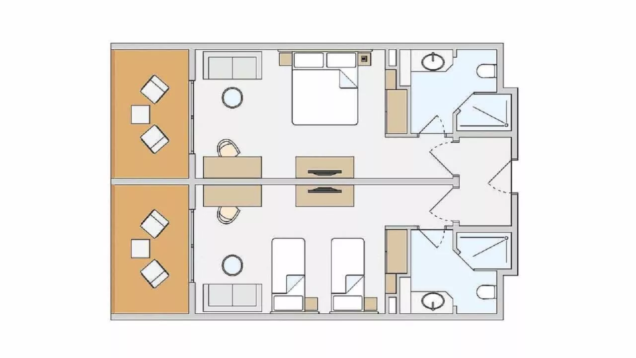 Dimensiuni: 58 mp Numar de camere: 8 camere This spacious suite comes with 1 bedroom, a seating area and 1 bathroom with a shower and a hairdryer. The suite features air conditioning, a wardrobe, a safe deposit box, a flat-screen TV, as well as sea views. The unit has 3 beds.
