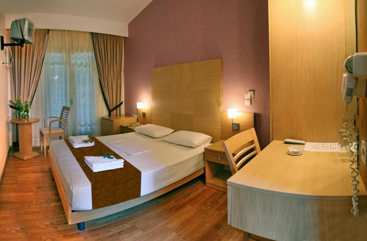 Dimensiuni: 21 mp Numar de camere: 12 camere Tastefully furnished room with air conditioning, satellite TV and free Wi-Fi. Its balcony offers views over the pool, the garden and the Aegean Sea.