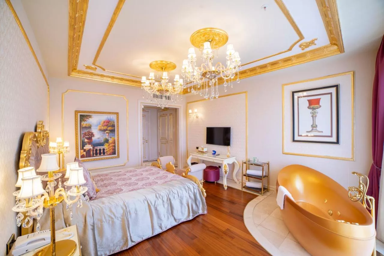 Baie: Halat de baie Prosoape Articole de toaletă gratuite Papuci de casă Uscător de păr Toaletă Duş Hârtie igienică Cadă Bucătărie: Mașină de cafea Cană fierbător General : Seif Pardoseală de gresie/marmură Intrare privată Încălzire Izolare fonică Plasă de ţânţari Aer condiţionat Media/Tehnologie: TV cu ecran plat TV Telefon Canale prin cablu Dormitor: Paturi extra lungi (> 2 metri) Lenjerie de pat Garderobă sau dulap Servicii: Serviciu de trezire Zonă de living: Canapea Facilităţile camerei: Priză lângă pat Canapea extensibilă Mâncăruri și băuturi: Aparat pentru prepararea de ceai/cafea Minibar Exterior: Balcon Vedere: Vedere