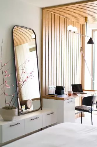 Dimensiuni: 55 mp Numar de camere: 1 camera Această suită este izolată fonic și are aparat de ceai/cafea și halat de baie. Baie privată cu duș
