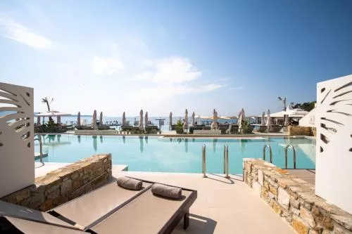 Dimensiuni: 40 mp Numar de camere: 3 camere Această suită decorată modern are zonă de relaxare, piscină privată și vedere la mare. Baia privată este dotată cu o cadă spa.