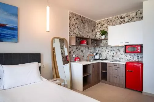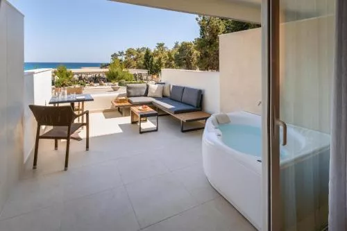 Dimensiuni: 40 mp Numar de camere: 2 camere Această suită decorată modern are zonă de relaxare și vedere la mare. Baia privată este dotată cu o cadă spa.