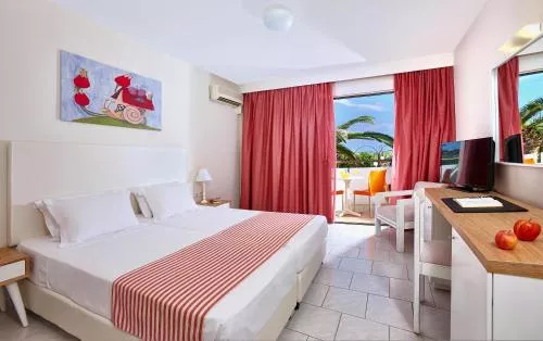 Dimensiuni: 25 mp Numar de camere: 1 camera Cameră decorată modern, care include 1 dormitor cu pat queen-size sau paturi twin și o baie cu duș sau cadă. Are o verandă sau terasă mobilată cu vedere la mare.