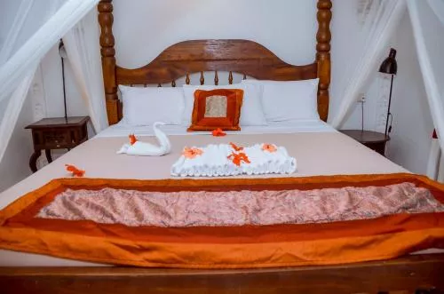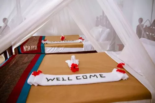 Cu un design Swahili, cazarea include un balcon sau o verandă și o baie cu duș. Paturile sunt acoperite cu o plasă de țânțari.