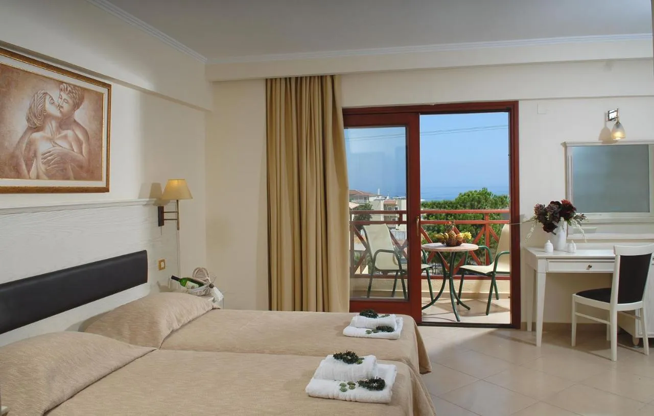 Hotelul este situat între Agios Nikolaos și capitala Heraklion. Aeroportul Internațional Nikos Kazantzakis este la 30 km distanță. Recepția, deschisă non-stop, oferă servicii de închiriere auto și servicii medicale.
