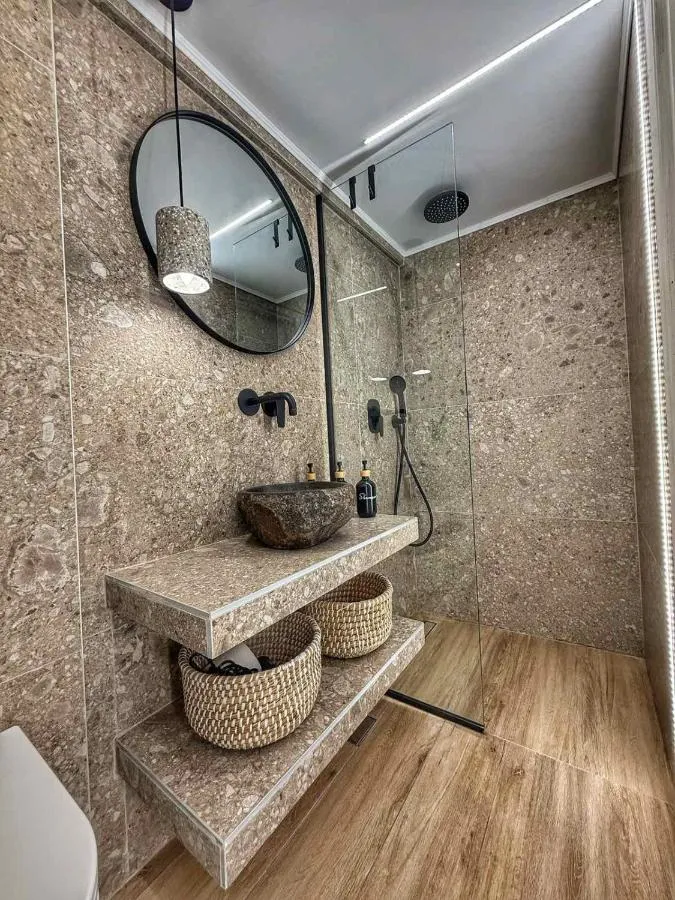 Room Amenities: Hardwood or parquet floors Iron Fan Ironing facilities Seating Area Tile/marble floor Sofa bed Heating Tumble dryer Cleaning products Air conditioning Sofa Drying rack for clothing Socket near the bed Wardrobe or closet Outdoor & View: Sea view Patio Terrace Balcony City view Media & Technology: Flat-screen TV TV Food & Drink: Oven Outdoor furniture Toaster Kitchenware Coffee machine Dining table Tea/Coffee maker Barbecue Refrigerator Stovetop Electric kettle Kitchen Outdoor dining area Children's high chair Bathroom: Free toiletries Toilet paper Hairdryer Toilet Shower Private bathroom Services & Extras: Linen Towels Accessibility: Upper floors accessible by stairs only Building characteristics: Private apartment in building Cleanliness & disinfecting: Hand sanitiser