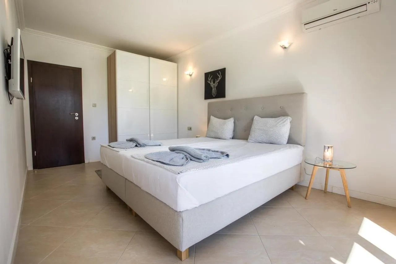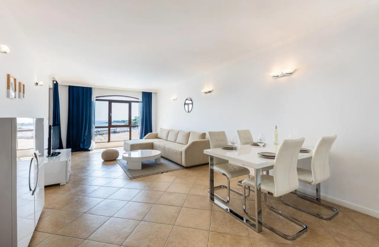 Dimensiuni: 130 mp Numar de camere: 5 camere The apartment consists of 2 bedrooms, a living room with a sofa and an equipped kitchen, 2 bathrooms, a terrace. The kitchen is equipped with a hot plate, refrigerator, electric kettle and dishes. It has a partial sea view. Please note that the room photos are only examples of a specific room type. Your actual room may be decorated differently and there is no guarantee that you will be accommodated in the exact same room as shown in the photos.