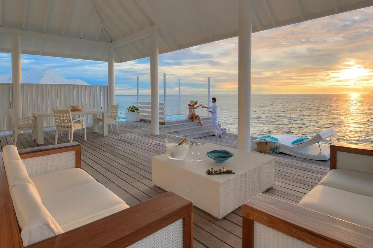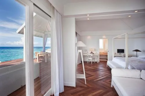 Bungalourile oferă acces direct la plajă și au o verandă privată cu fotolii și șezlonguri. Acestea vin și cu dușuri în aer liber. Vilele de pe apă dispun de o terasă mare, care duce spre lagună. Zona de living vine cu mobilier din ratan și pardoseală din lemn.