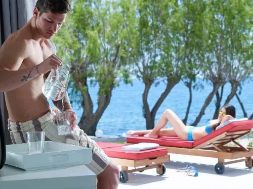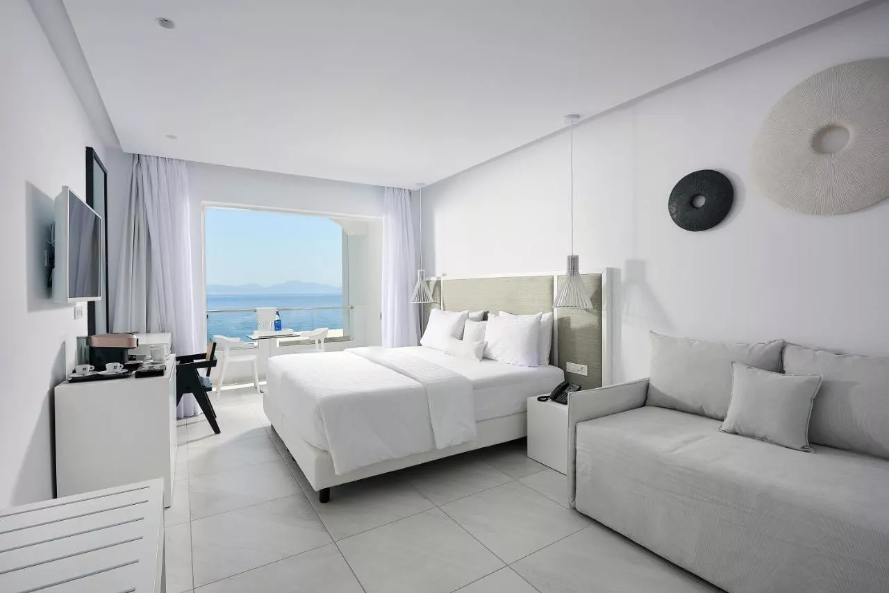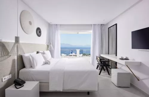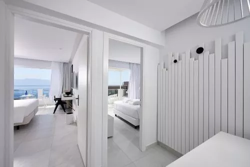 Dimensiuni: 45 mp Numar de camere: 2 camere Această suită are balcon sau terasă cu vedere la Marea Egee și la piscină. Unitatea are: