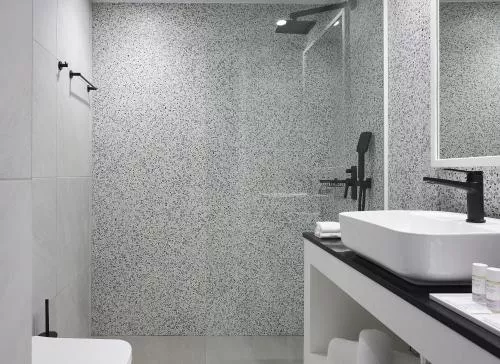 - baie modernă cu duș tip walk-in, halate de baie, papuci, articole de toaletă gratuite și uscător de păr