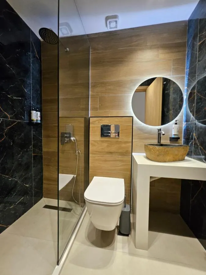 Dimensiuni: 15 mp Numar de camere: 4 camere The studio's kitchenette, which features a refrigerator and a microwave, is available for cooking and storing food. The studio provides air conditioning, a tea and coffee maker, as well as a private bathroom featuring a shower and a hairdryer. The unit offers 2 beds. Baie privată cu duș