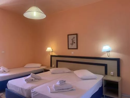 La hotel, toate camerele au balcon. Dotate cu o baie privată cu duș, toate camerele de la Hotelul Polychrono Beach au un televizor cu ecran plat și aer condiționat, iar unele camere oferă și o zonă de relaxare. Toate unitățile pun la dispoziția oaspeților un frigider.