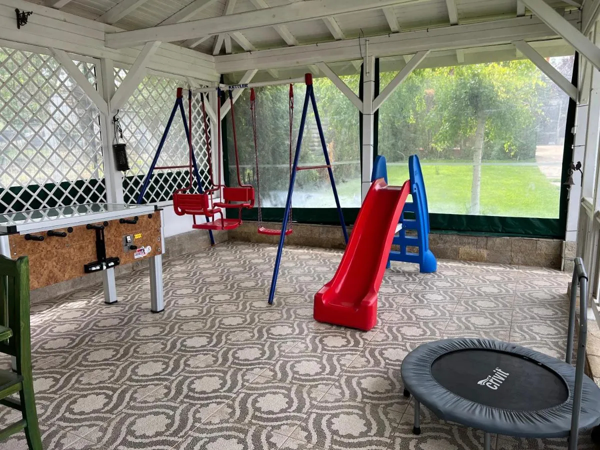 Bucătărie: Masă Cuptor Cuptor cu microunde Frigider Prăjitor de pâine Plită de gătit Chicinetă Cană fierbător Bucătărie Media/Tehnologie: TV cu ecran plat TV Exterior: Mobilier de grădină Terasă Grătar Balcon Piscină privată Zonă de luat masa în aer liber Vedere: Vedere la piscină Vedere la grădină Facilităţile camerei: uscător de rufe Priză lângă pat Baie: Prosoape Uscător de păr Toaletă Hârtie igienică Baie privată Divertisment și servicii pentru familii: Jocuri și puzzle-uri Caracteristicile clădirii: Independentă Mâncăruri și băuturi: Aparat pentru prepararea de ceai/cafea Dormitor: Lenjerie de pat Garderobă sau dulap General : Intrare privată Încălzire Aer condiţionat Distanțare fizică: Aer condiționat individual pentru fiecare cameră de la proprietate Zonă de living: Zonă de luat masa Curățenie și dezinfectare: Dezinfectant pentru mâini