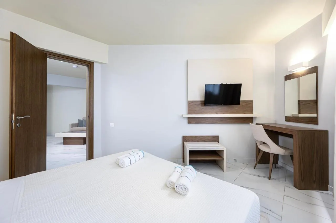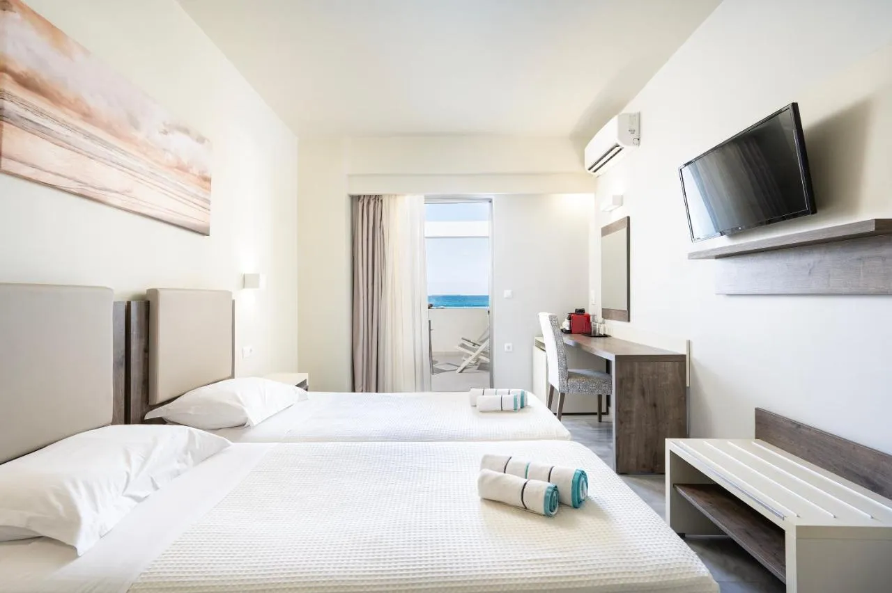 Hotelul oferă oaspeților camere cu aer condiționat, dotate cu birou, fierbător, frigider, seif, televizor cu ecran plat, balcon și baie privată cu duș. Camerele de la Harmony Rethymno Beach includ lenjerie de pat și prosoape.