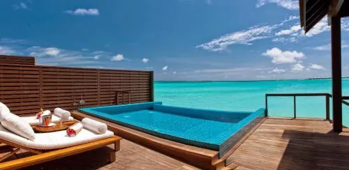 Dimensiuni: 330 mp Numar de camere: 1 camera Situată pe piloni din lemn în laguna translucidă, suita Ocean include 2 dormitoare și o cameră de zi mare. Are o piscină infinită de 25 m² cu trepte spre lagună. De asemenea, oferă o terasă la soare în aer liber și 2 băi.