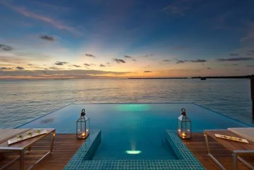 Dimensiuni: 290 mp Numar de camere: 1 camera Situată pe piloni deasupra Oceanului Indian, vila Ocean cu piscină oferă o piscină infinită, o cadă spa de sine stătătoare și o terasă în aer liber, care duce la lagună. Baia privată are duș și TV.