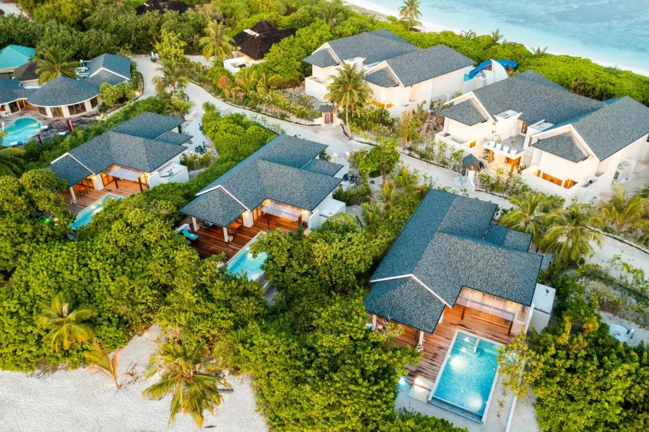 Reședința Sunset Beach cu piscină la Hideaway Beach Resort and Spa este refugiul tău de lux pe plajă - tot ceea ce familia ta a visat că ar putea fi o vacanță în Maldive, și chiar mai mult.