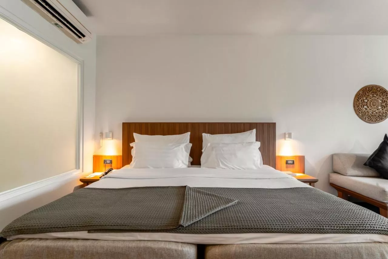 Un televizor mare cu ecran plat, un balcon privat și pardoseală din lemn sunt standard în toate camerele cu aer condiționat. Oferind interioare moderne, confortul din cameră include o cadă și halate de baie.