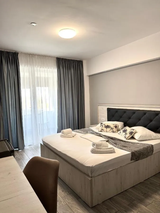Dimensiuni: 90 mp Numar de camere: 1 camera This spacious apartment comes with 1 living room, 2 separate bedrooms and 2 bathrooms with a shower. The apartment's kitchen, which has a refrigerator and kitchenware, is available for cooking and storing food. The air-conditioned apartment features a flat-screen TV with streaming services, a washing machine, soundproof walls, a wardrobe as well as sea views. The unit has 3 beds.