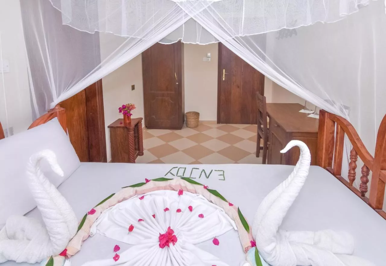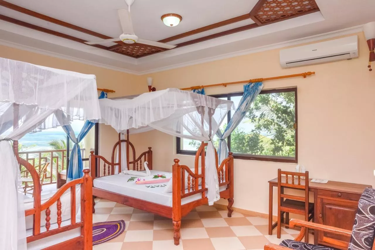 Dimensiuni: 33 mp Numar de camere: 1 camera Featuring sea views and private bathroom, this spacious double room is furnished in Zanzibari style. The rooms are equipped with mosquito nets, table and chairs. Baie privată cu duș