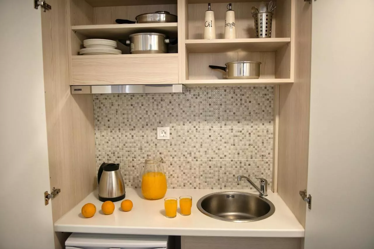 Dimensiuni: 25 mp Numar de camere: 2 camere Featuring a private balcony, this studio is decorated with cool tiled floors and wooden furniture. It offers a kitchenette with a fridge, and has a private bathroom with a shower.