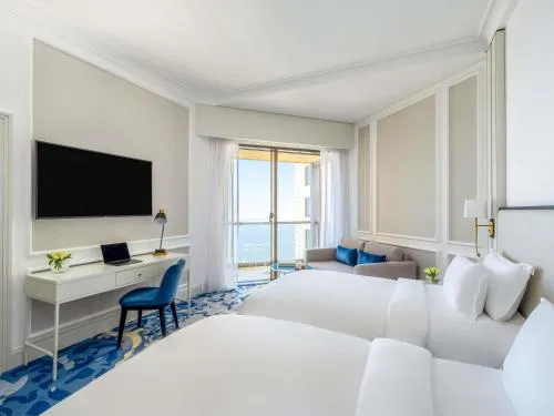 Camerele și suitele spațioase sunt dotate cu mobilier modern și balcoane private cu vedere la Golful Arab. Toate camerele sunt echipate cu televizoare moderne cu ecran plat, sisteme de sunet Bose și minibar.
