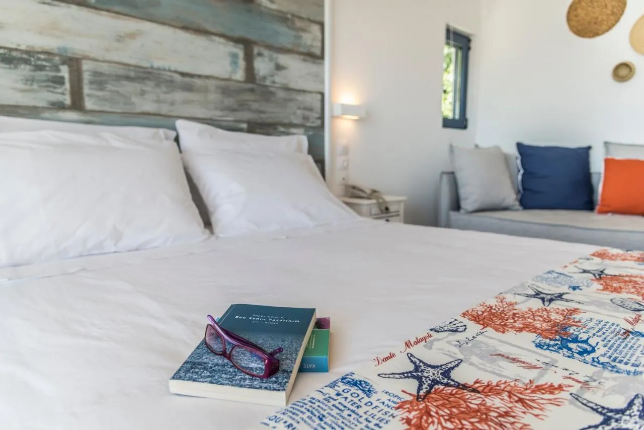 Dimensiuni: 20 mp Numar de camere: 2 camere Just 30 metres from the sandy beach, this air-conditioned room has a balcony overlooking the Aegean Sea and the mountains. Includes an LCD TV 22'', a fridge and a hairdryer.