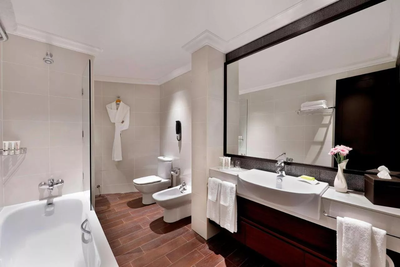 Baie: Halat de baie Prosoape Articole de toaletă gratuite Papuci de casă Uscător de păr Toaletă Duş bideu Hârtie igienică Cadă Baie privată General : Seif Fier de călcat Facilităţi de călcat Izolare fonică Cameră(e) comunicantă(e) disponibilă(e) Aer condiţionat Accesibilitate: Etaje superioare accesibile cu liftul Media/Tehnologie: TV cu ecran plat TV Stație de andocare iPod Telefon Canale prin cablu Canale prin satelit Servicii: Serviciu de trezire Zonă de living: Zonă de relaxare Facilităţile camerei: Priză lângă pat Mâncăruri și băuturi: Aparat pentru prepararea de ceai/cafea Minibar Dormitor: Lenjerie de pat Vedere: Vedere la oraș