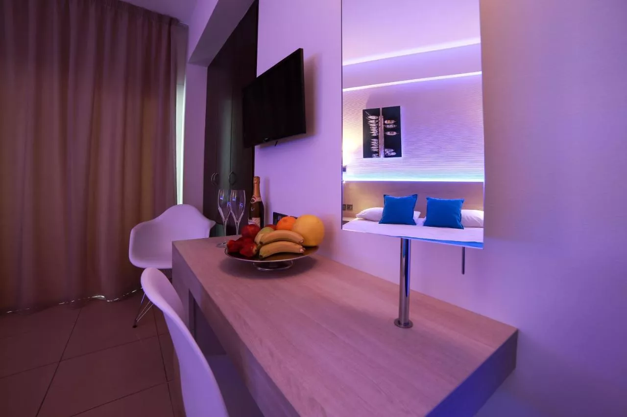 Camerele sunt decorate modern, cu mobilier din lemn închis la culoare și ferestre cu geam dublu, toate deschizându-se spre un balcon cu vedere laterală sau completă la Marea Mediterană. Sunt incluse un televizor LCD de 22", un seif și o baie privată cu duș.