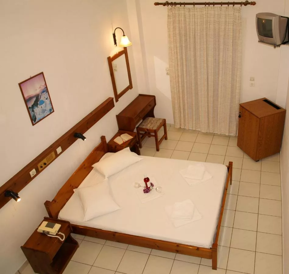 Dimensiuni: 18 mp Numar de camere: 2 camere Această cameră se bucură de vedere la satul Pyrgos sau la grădina hotelului. Baie privată cu duș