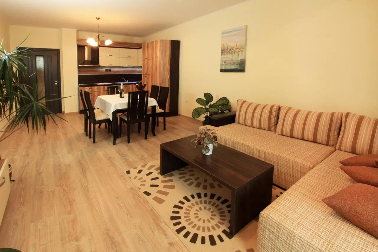 Dimensiuni: 100 mp Numar de camere: 2 camere You want to enjoy every free moment, breathing freely and welcoming the gentle sea breeze! This is your apartment! Enjoy the view, the air, the tranquility, and the luxury that the common area of the gated complex offers! The kitchen attached to the apartment is available for cooking and food storage. There is an electric stove, an electric kettle for hot water, and dishes. The air-conditioned apartment has a flat-screen TV, a wardrobe, and a sofa bed. The apartment has 1 bedroom or two single beds.