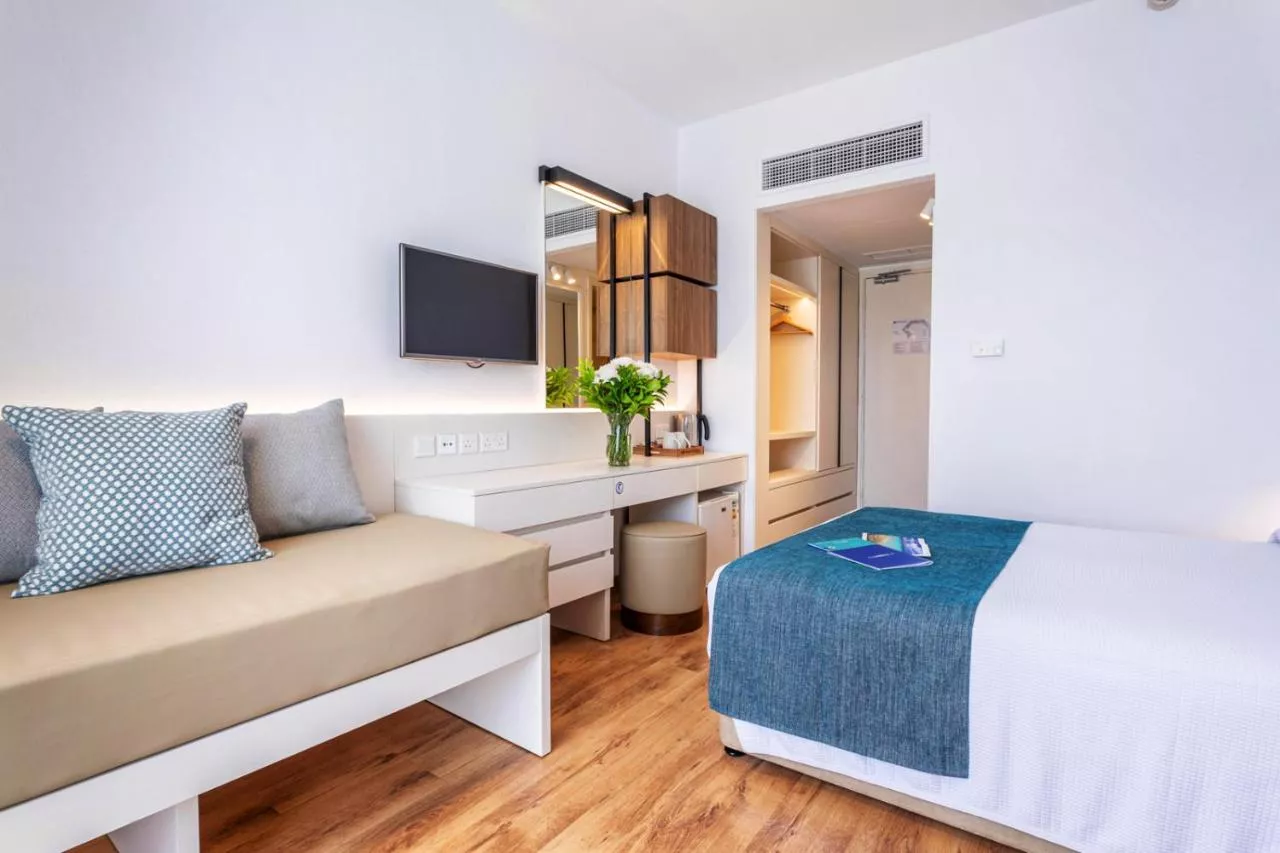 Dimensiuni: 19 mp Numar de camere: 10 camere Această cameră triplă are aer condiționat, TV cu ecran plat cu canale prin satelit, baie privată și balcon cu vedere la mare. Unitatea include 2 paturi.