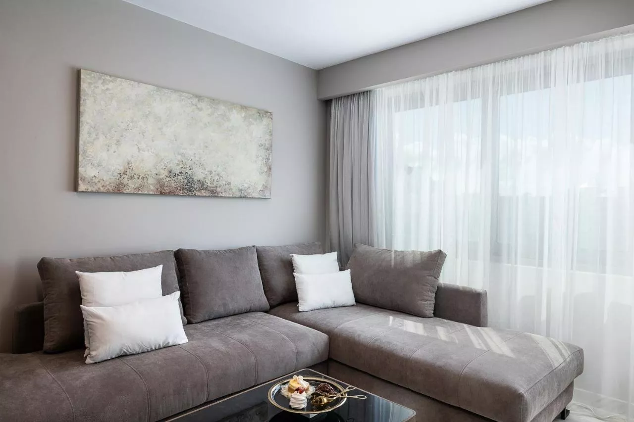 Dimensiuni: 30 mp Numar de camere: 1 camera Această suită de lux cu vedere la mare are 1 dormitor matrimonial și living separat, cu 1 canapea extensibilă dublă sau 2 canapele extensibile de o persoană. Aceasta include: