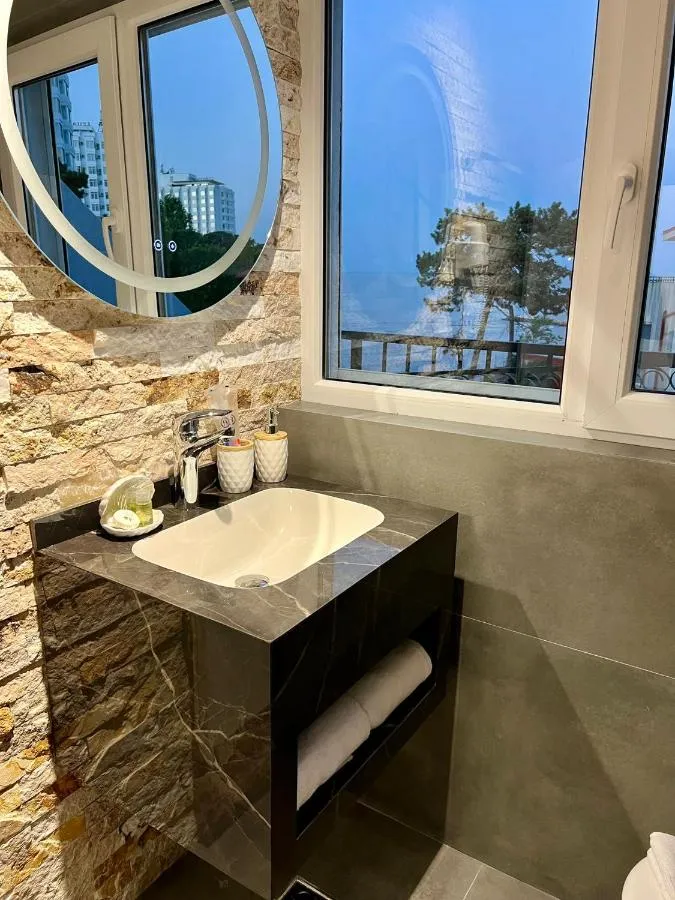 General : Pardoseală de lemn sau parchet Ventilator Hipoalergică Încălzire Plasă de ţânţari Aer condiţionat Detector de monoxid de carbon Izolare fonică Vedere: Vedere la mare Media/Tehnologie: TV cu ecran plat TV Canale prin satelit Bucătărie: Cuptor Cuptor cu microunde Prăjitor de pâine Ustensile de bucătărie Produse de curățenie Mașină de cafea Masă Frigider Plită de gătit Chicinetă Cană fierbător Bucătărie Exterior: Mobilier de grădină Terasă Grătar Balcon Zonă de luat masa în aer liber Zonă de living: Zonă de relaxare Zonă de luat masa Baie: Articole de toaletă gratuite Hârtie igienică Prosoape Papuci de casă Uscător de păr Toaletă Duş Baie privată Dormitor: Lenjerie de pat Garderobă sau dulap Servicii: Serviciu de trezire Facilităţile camerei: uscător de rufe Priză lângă pat Mâncăruri și băuturi: Aparat pentru prepararea de ceai/cafea Minibar Distanțare fizică: Aer condiționat individual pentru fiecare cameră de la proprietate Curățenie și dezinfectare: Dezinfectant pentru mâini