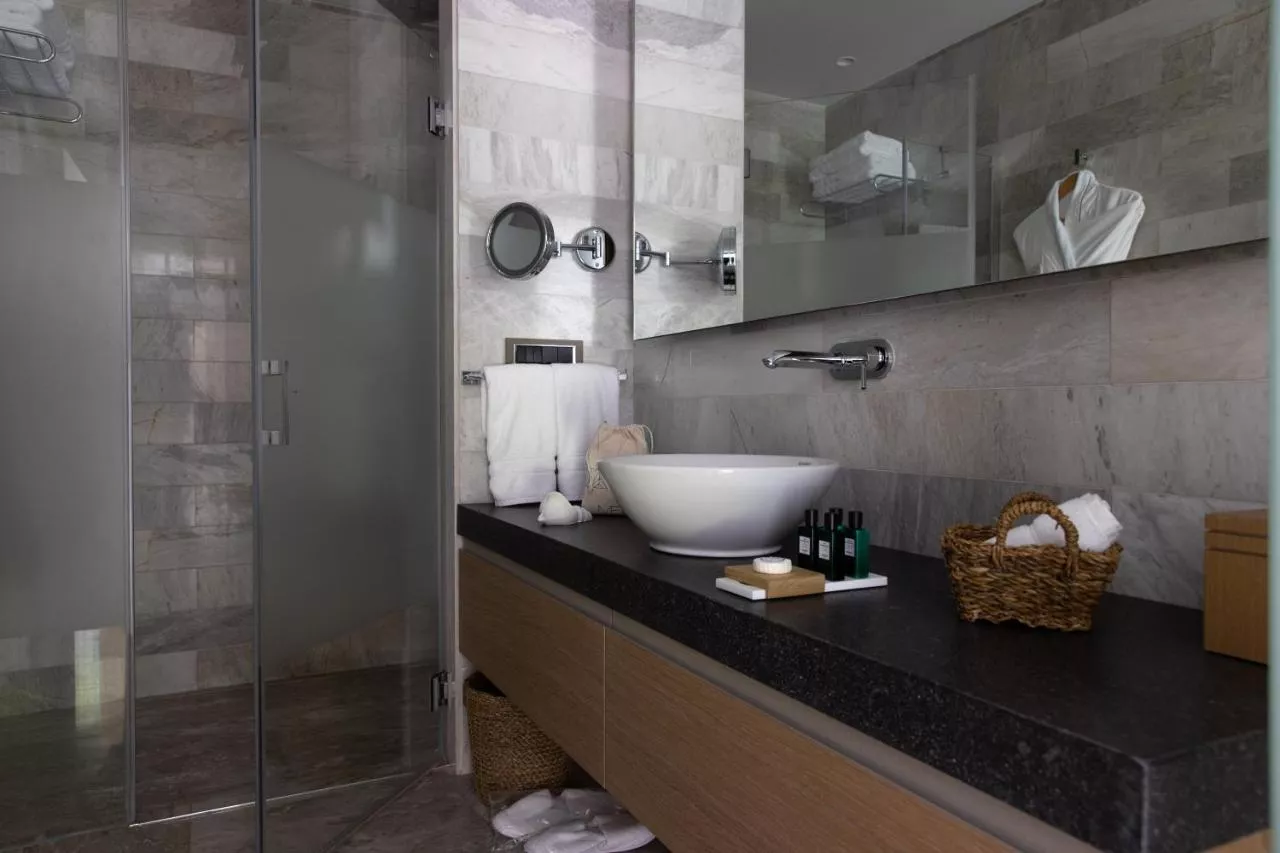 Dimensiuni: 270 mp Numar de camere: 1 camera Cu o grădină privată de 270 m² cu vedere la Marea Egee și o piscină privată, suitele cu 3 dormitoare și piscină cu vedere la mare, de 240 m², sunt perfect dotate pentru grupuri de prieteni sau familii deopotrivă. Acestea includ lenjerie de pat confortabilă, living spațios, bucătărie complet utilată și o terasă suficient de mare pentru a găzdui o întâlnire privată în timpul șederii dumneavoastră. Designul este modern și elegant, cu accesorii alese manual, adăugând farmec spațiului. Baie privată cu duș