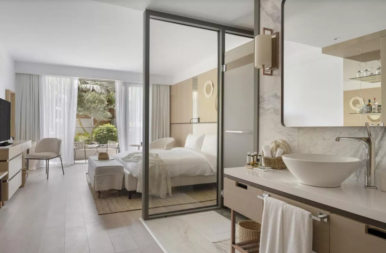 Dimensiuni: 79 mp Numar de camere: 1 camera Potrivită pentru familii de 4 persoane, această cameră Deluxe de familie, cu vedere la mare, este spațioasă și are 79 m². Include un dublu confortabil pentru 2 adulți, 1 baie, precum și 2 paturi de o persoană într-o zonă separată a camerei cu ușă proprie. Un balcon cu o vedere uimitoare la mare oferă confort suprem și este ideal pentru relaxare. Designul camerei Deluxe de familie cu vedere la mare este completat de tonuri deschise, precum și de accesorii artizanale alese manual.