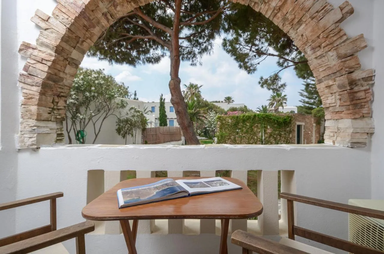 Hotelul Naxos Beach este situat într-un parc și construit cu respect pentru stilul tradițional cicladic.